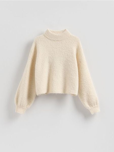 Sweter z bufiastymi rękawami – kremowy