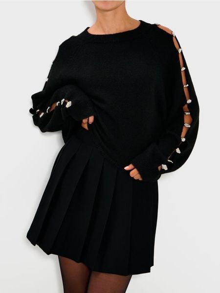 Sweter ze zdrobieniami na rękawach – czarny