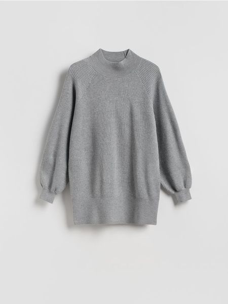 Sweter o swobodnym kroju, wykonany z prążkowanej dzianiny.