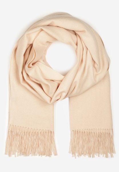 Jasnobeżowy Szalik z Tkaniny Wykończony Frędzlami Teofilla