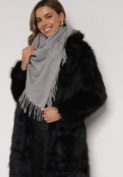 Ciemnoszary Szalik z Bawełny i Wiskozy o Klasycznym Fasonie z Frędzlami Vetirosa