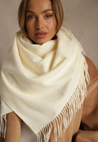 Jasnobeżowy Bawełniano-Wiskozowy Szalik w Kształcie Trójkąta z Frędzlami Vetisara