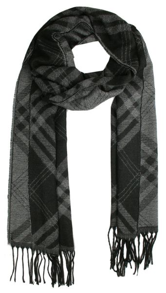 Elegancki Szalik Męski z Wiskozą - His Story - Czarno-Grafitowy, Wzór Geometryczny