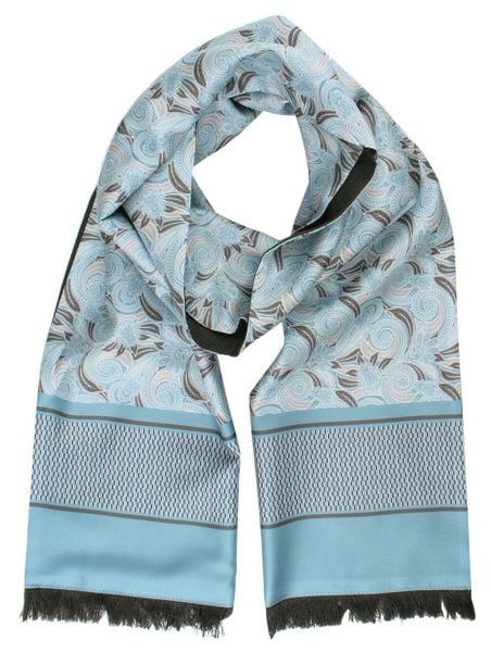 Elegancki Szalik Wełniano-Jedwabny – His Story – Błękitny w Orientalny Wzór