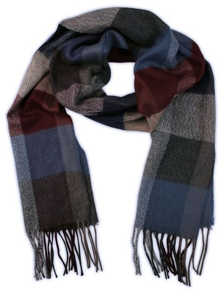 Kolorowy Szalik Firmy V.Fraas -Cashmink- z Frędzlami, Męski, w Grubą Kratkę