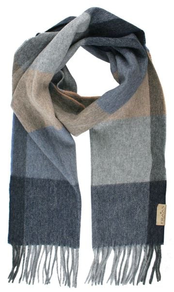 Wełniany Szalik Męski z Jedwabiem – V. Fraas – Duża Krata, Stonowane Kolory