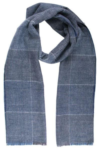 Szalik Męski V. Fraas – Cashmink – Niebieski, Dwustronny, Kratka