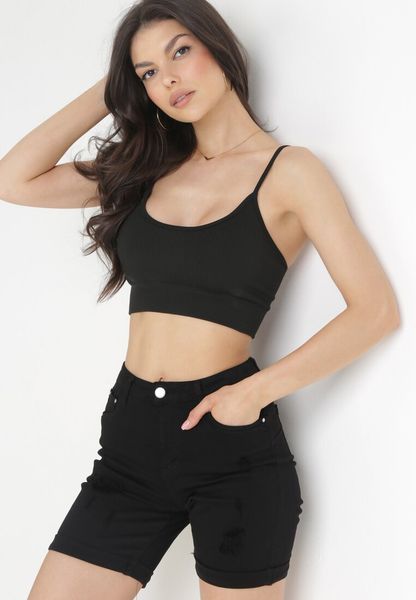 Czarne Szorty Jeansowe z Podwiniętymi Nogawkami Push Up Shadins