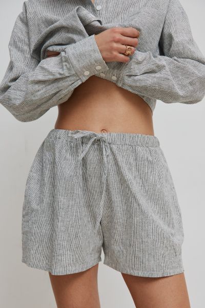 Krótkie spodenki z lnu i bawełny w paski BLACK & WHITE – BARRO -L