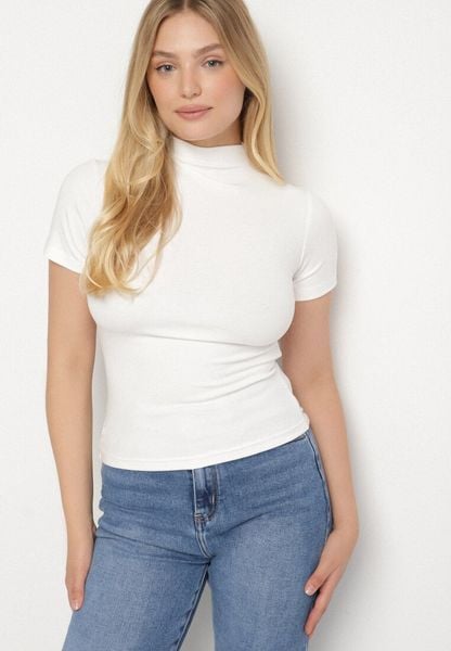 Biały Dopasowany T-shirt z Wiskozy z Golfem Isovera