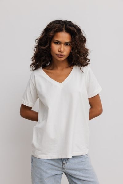 T shirt z dekoltem w kształcie V w kolorze ECRU- V NECK