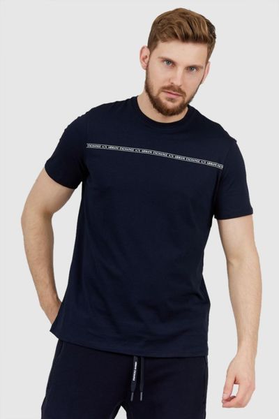 ARMANI EXCHANGE Granatowy t-shirt męski z paskiem z logo, Rozmiar S