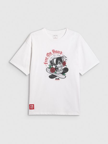 4F T-shirt loose z nadrukiem męski – biały S