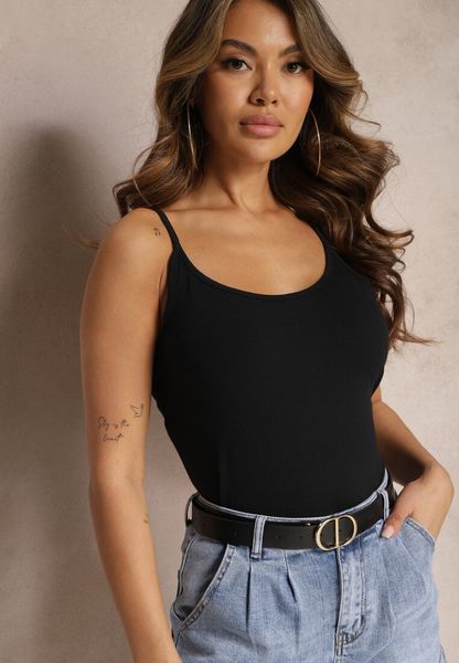 Czarny Bawełniany Top na Regulowanych Ramiączkach Resalio