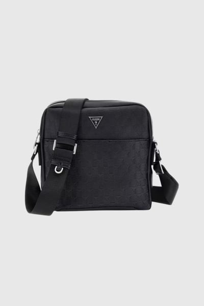 Czarna saszetka męska marki Guess, wykonana z wysokiej jakości skóry ekologicznej. Wyposażona w dwie pojemne komory, jedną wewnętrzną kieszeń na zamek oraz jedną wsuwaną. Dodatkowo posiada jedną kieszeń z tyłu zapinaną na magnes. Regulowany pasek zapewnia wygodę noszenia. Praktyczna i stylowa – sprawdzi się w każdej sytuacji.