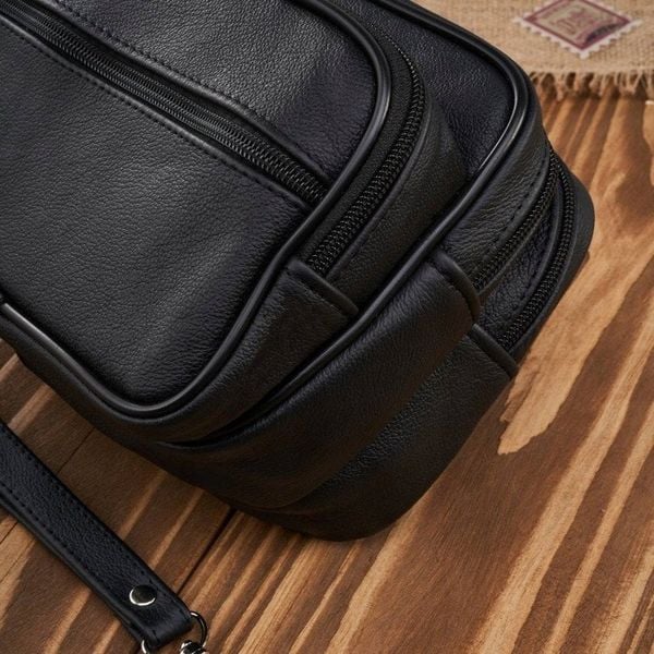 Abruzzo Saszetka męska skórzana do ręki czarna skóra naturalna ABR-15