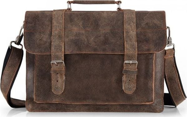 Solome BRĄZOWA SKÓRZANA TORBA LISTONOSZKA NA RAMIĘ SOLOME