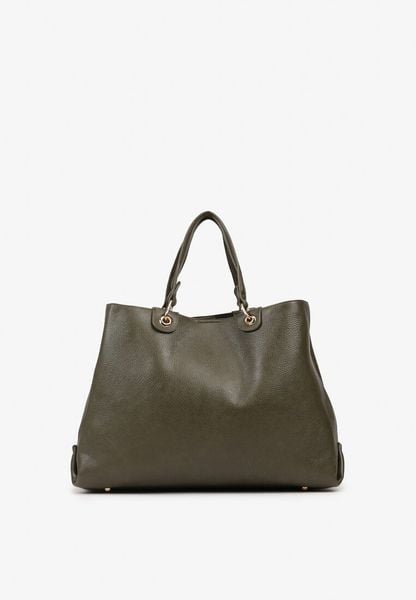 Ciemnozielona Dwukomorowa Torebka Typu Shopper Ozdobiona Metalicznymi Aplikacjami Adorrive