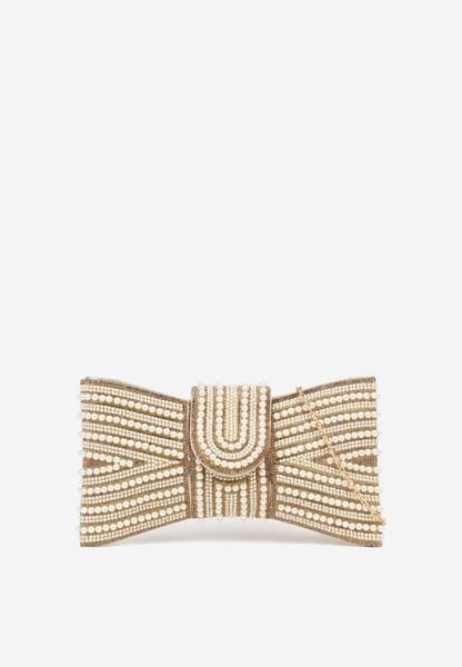 Złota Torebka Kopertówka Vices w Kształcie Kokardy do Ręki i z Łańcuszkiem Isarri