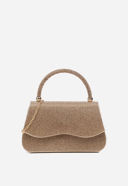 Złota Wieczorowa Torebka Cyrkoniowa z Rączką Zapinana na Magnes Jilagia