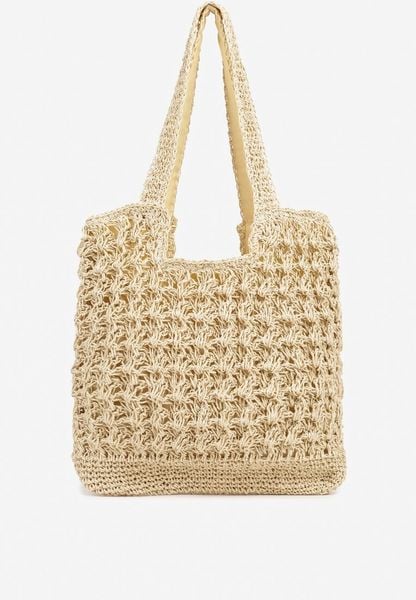 Beżowa Torebka Plażowa Typu Shopper w Stylu Boho Galira