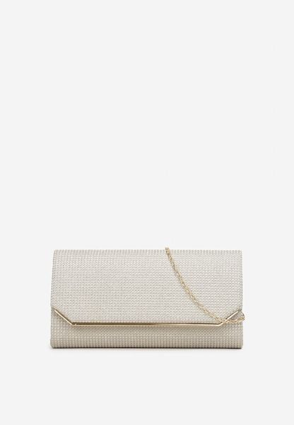 Złota Torebka Kopertówka Ozdobiona Połyskiem z Odpinanym Łańcuszkiem Cyrila