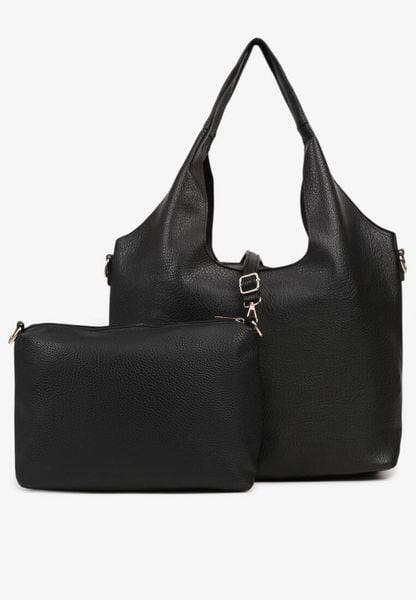 Czarna Torebka Typu Shopper z Klamerką i Dodatkowym Paskiem Crossbody Kolarienna