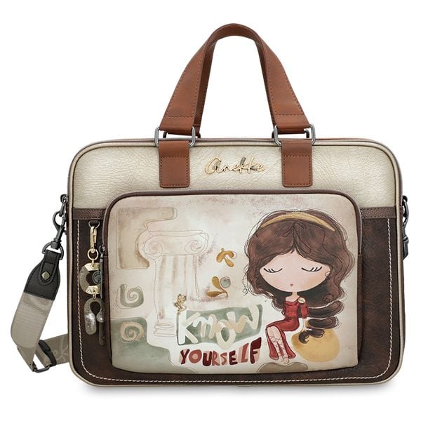 Torebka damska Anekke, na laptopa z uszami do ręki i regulowanym odpinanym paskiem, brązowa, 42706-113