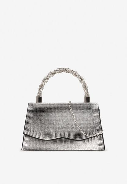 Czarno-Srebrna Wieczorowa Torebka Zdobiona Cyrkoniami z Rączką i Łańcuszkiem Galorea