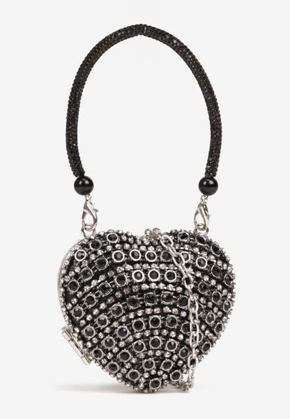 Czarna Koktajlowa Torebka Serce Ozdobiona Cyrkoniami Deodore