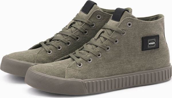 Męskie wysokie trampki z matową fakturą i wytłaczanym logo ciemnooliwkowa V2 OM-FOTH-0185 40