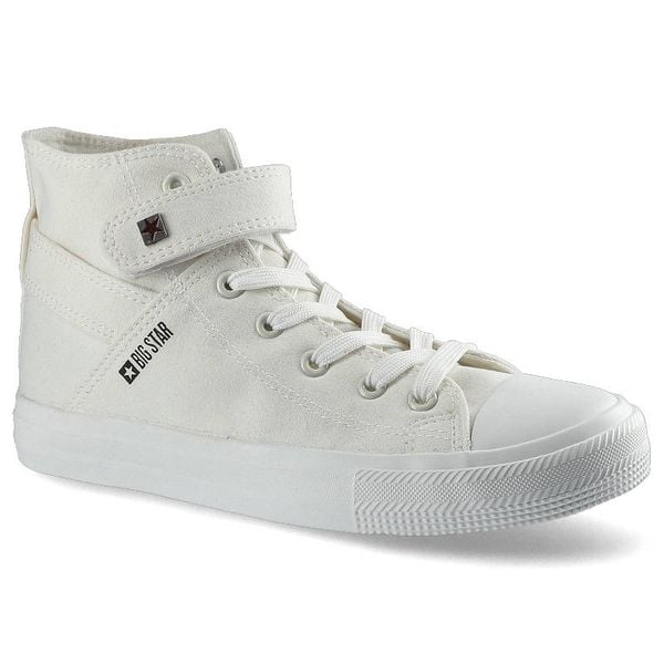 Trampki damskie Big Star, materiałowa sznurowana cholewka na klasycznym płaskim gumowym spodzie, białe, HH274450