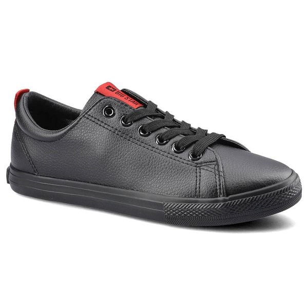 Trampki damskie Big Star, skóra ekologiczna ze sznurowaniem na płaskiej podeszwie, czarne, EE274303