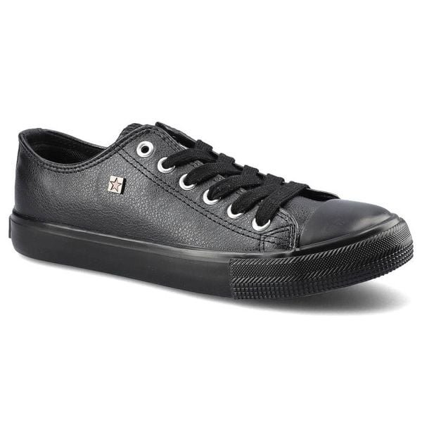 Trampki damskie Big Star, skóra ekologiczna ze sznurowaniem na płaskiej podeszwie, czarne, EE274303