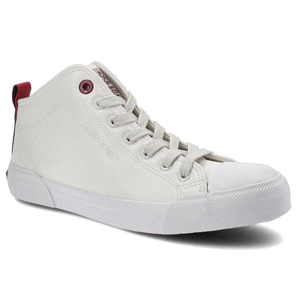 Trampki damskie Cross Jeans, wysokiej jakości materiał syntetyczny z gładką podwyższoną cholewką klasycznym sznurowaniem oraz stabilną grubszą podesz