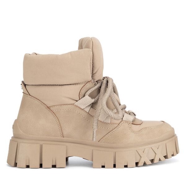 Ciemnobeżowe Trapery w Casualowym Stylu z Futerkowym Zdobieniem na Języku Taniapea