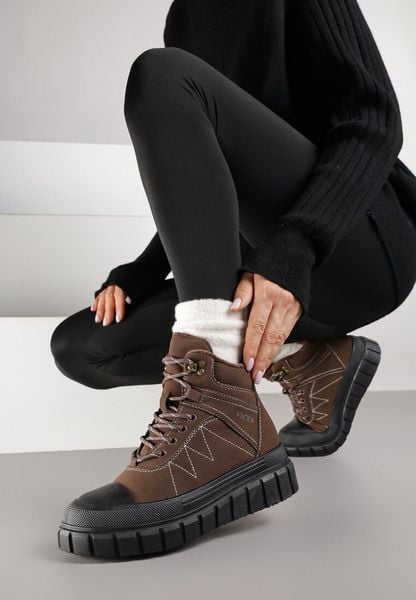 Brązowe Śniegowce Trapery Vices na Grubej Tłoczonej Podeszwie z Przeszyciami Anurrive