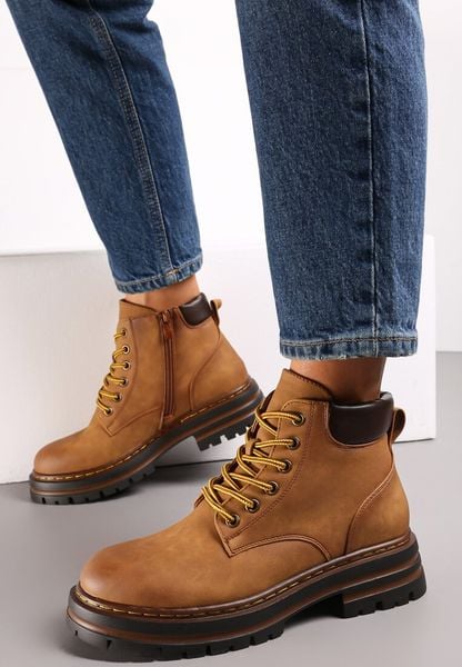 Brązowe Traperki z Ociepleniem i Sznurowaniem Almudena