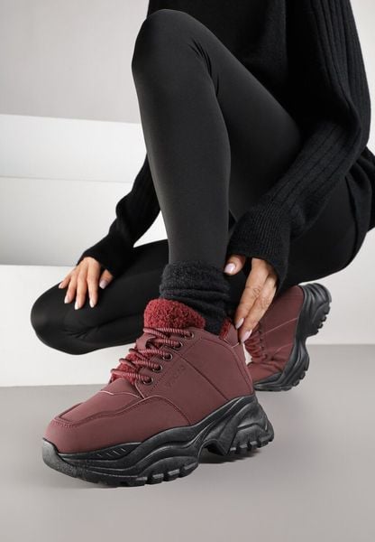 Bordowe Traperki Sneakersy Vices na Grubej Tłoczonej Platformie Typu Traperki Narrise