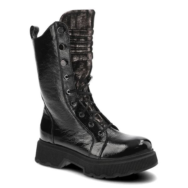 Trapery CLASICCO – 2250/01AM Czarny Naplak + W2 w wersji czarnej to propozycja dla kobiet, które lubią łączyć elegancję z miejską wygodą. Wykonane z wysokiej jakości skóry lakierowanej o głębokim połysku, przyciągają uwagę nietuzinkowym wykończeniem oraz subtelnymi, metalicznymi akcentami na cholewce. Klasyczne sznurowanie umożliwia dopasowanie obuwia do stopy, a solidna, pogrubiona podeszwa z wyrazistym bieżnikiem […]