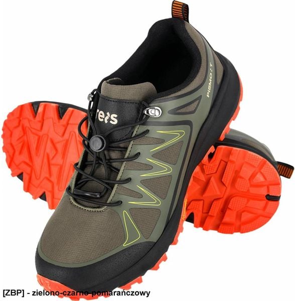 BPIEMONT – Półbuty robocze PIEMONT męskie lekkie wygodne tkanina Oxford połączona z PU wciągane do pracy górskie – zielono-czarno-pomarańczowy 44